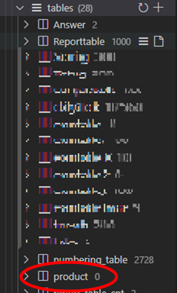 좌측 목록에 product 테이블 생긴 것 확인.