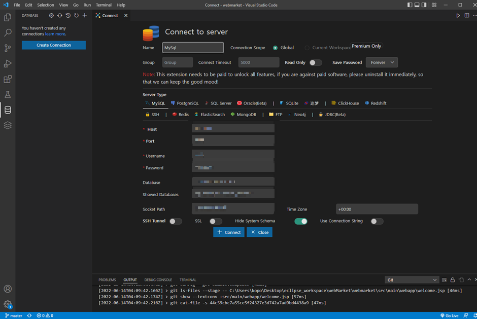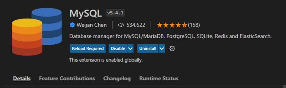 1. Extensions에서 MySQL 2가지 버전을 다 install 한다.