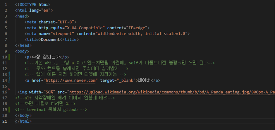 2. html:5 +엔터 : 기본구조 세팅