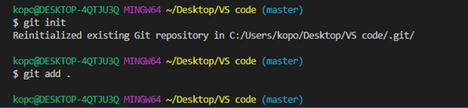 1. git init : 처음에 로컬 레포지토리 생성(처음 프로젝트 만들때마다만 실행함)